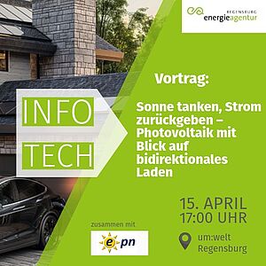 Die Veranstaltung richtet sich an alle Bürgerinnen und Bürger, die eine PV-Anlage planen oder bereits betreiben und sich über praktische Einsatzmöglichkeiten von Solarstrom informieren möchten. Der Blick auf Elektromobilität und bidirektionales Laden dient dabei als ergänzender Ausblick auf zukünftige Optionen.